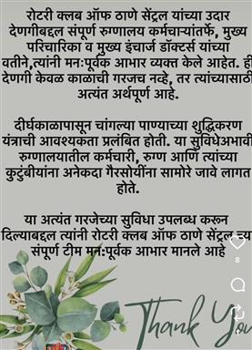 Donated Water filter in TMC hospital for Maternity Ward